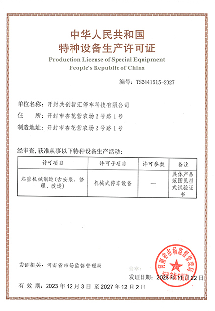 開(kāi)封共創(chuàng)智匯停車(chē)科技有限公司總部位于開(kāi)封市城鄉(xiāng)一體化示范區(qū),擁有研發(fā)生產(chǎn)廠(chǎng)區(qū)80畝,鋼結(jié)構(gòu)車(chē)間25000平方米,大型綜合試驗(yàn)場(chǎng)8000平方米,立體停車(chē)設(shè)備年生產(chǎn)能力30000車(chē)位。